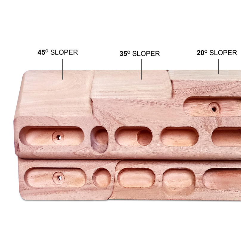 - Multiple sloper, slopy pockets and grip positions-tests the limits of finger strength and will help you towards your high grade goals.