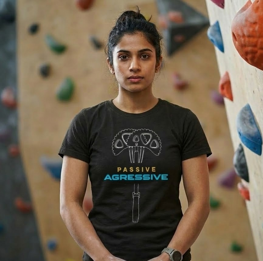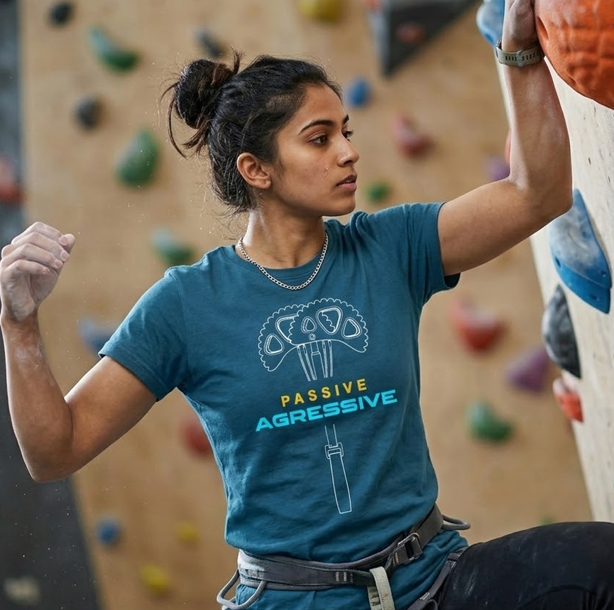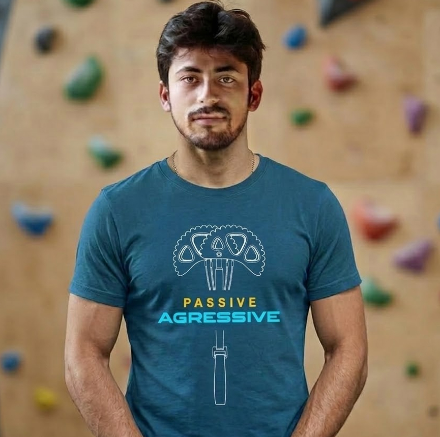 Passive Aggressive is a passion for climbing and a dream to conquer new heights. It reflects the relentless spirit of climbing, pushing boundaries, and turning every challenge into an opportunity for growth. A true climber’s mindset for those who dare to dream and ascend.
